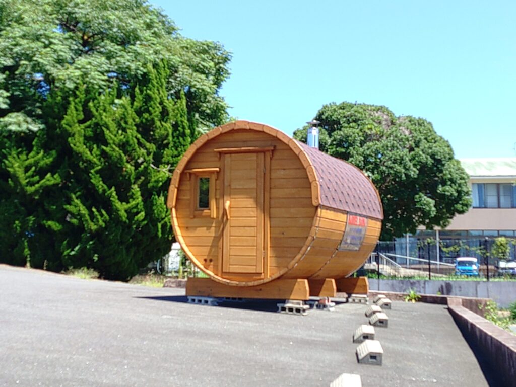 駐車場には、バレルサウナ見本があるのが目印。