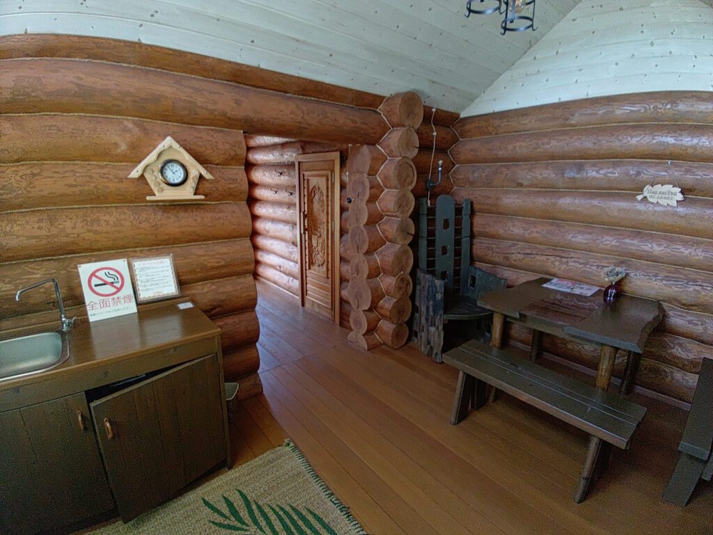 ここでまずは荷物を降ろし、サウナ小屋、いやログハウス小屋のなかを探索。